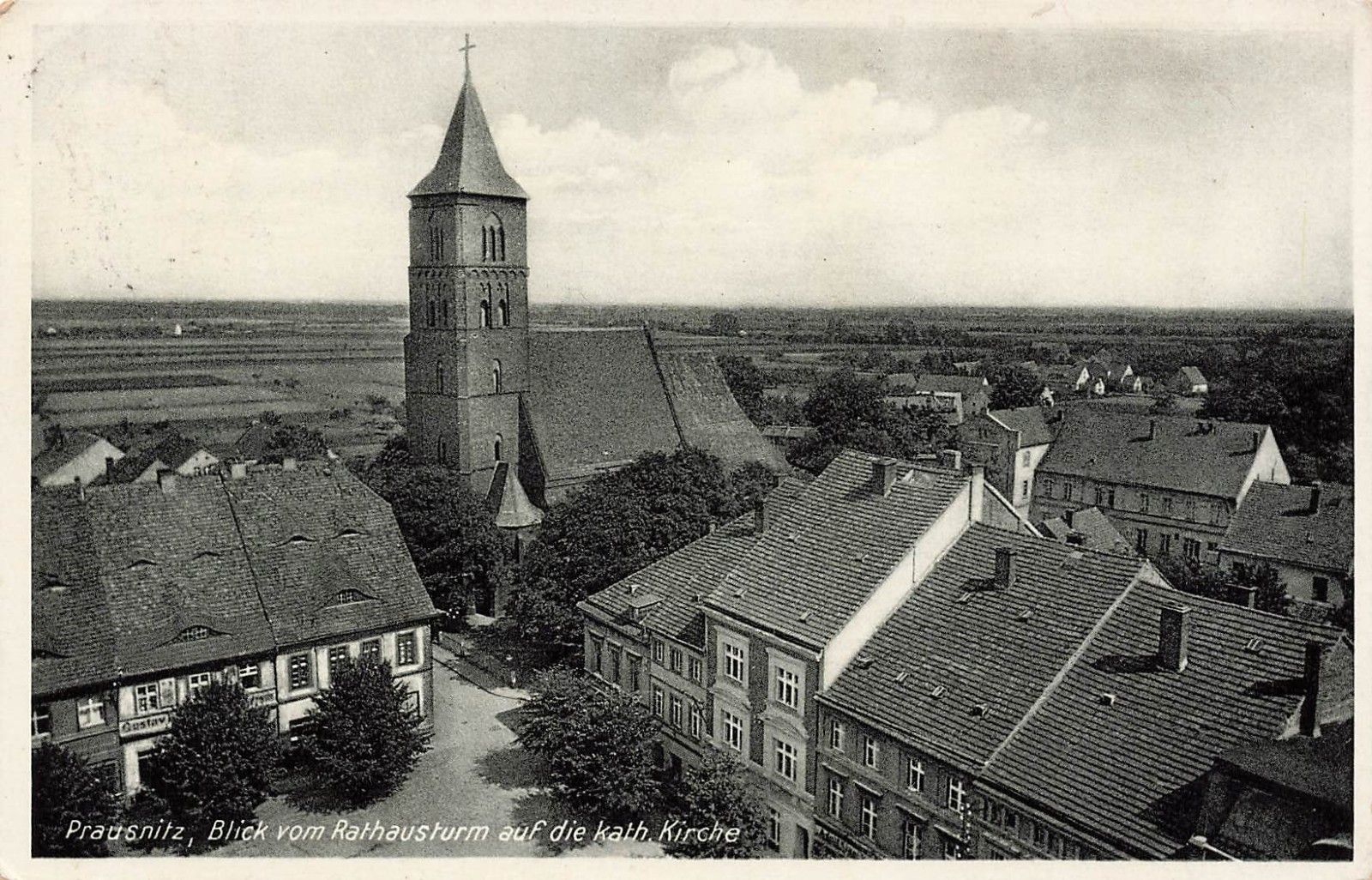 AK Prausnitz Prusice Katholische Kirche Schlesien 1940 gelaufen Postkarte