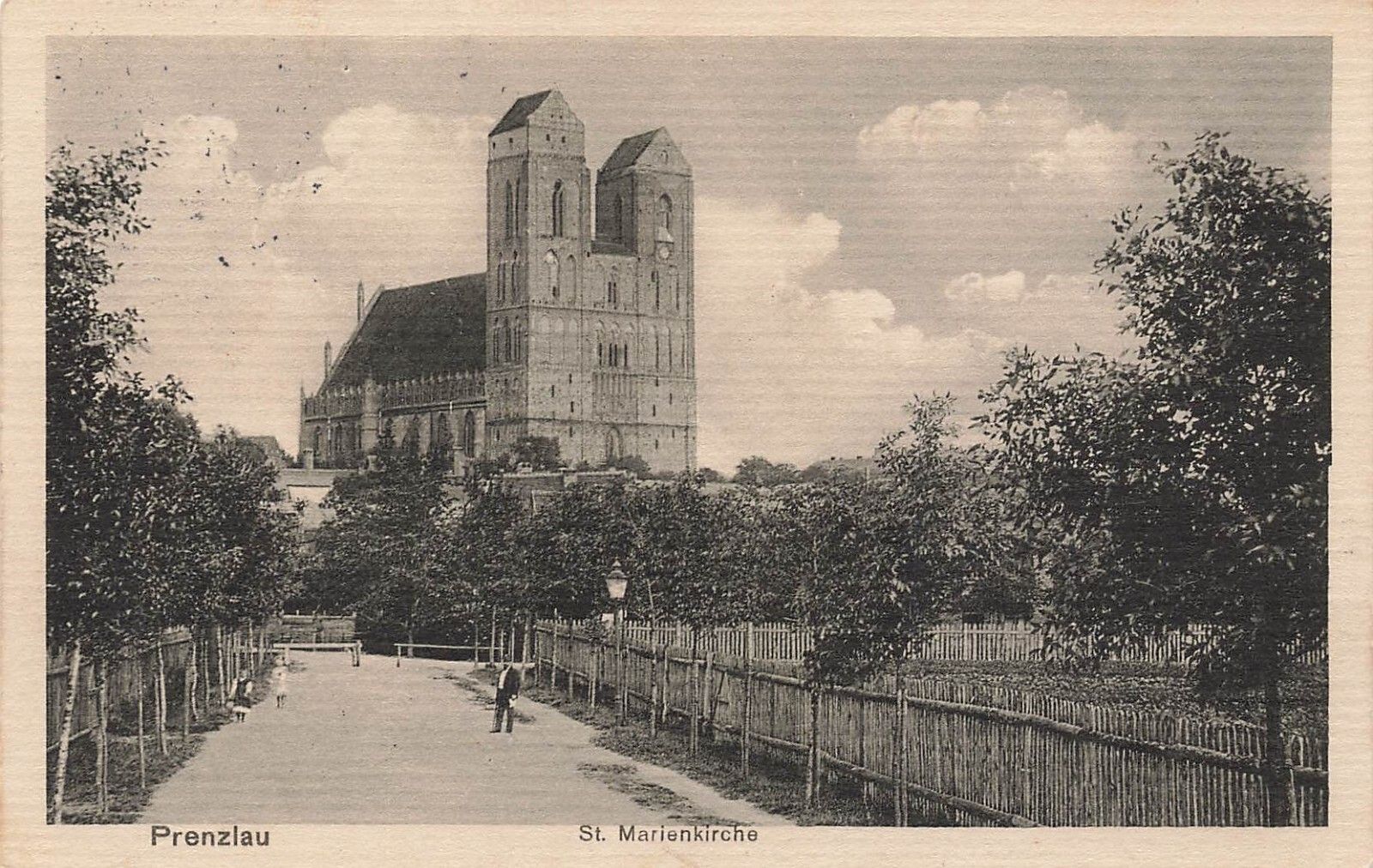 AK Prenzlau St. Marienkirche Menschen Brandenburg 1913 gelaufen Postkarte