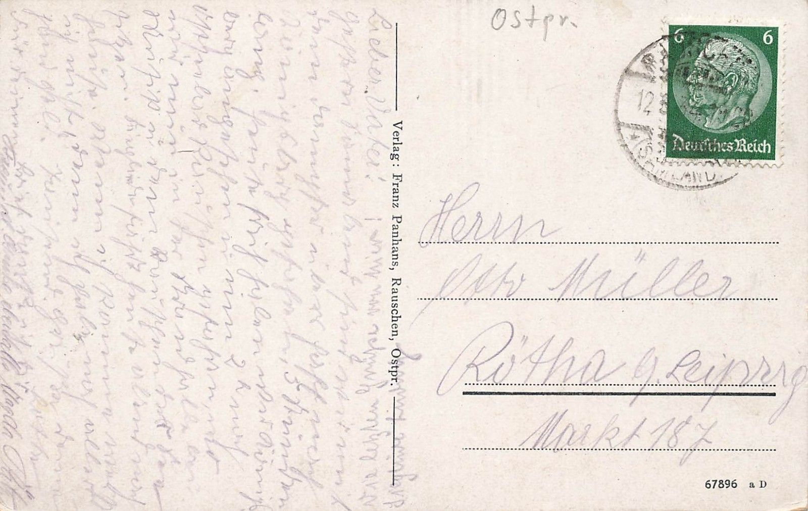 Rückseite: gelaufen 1934