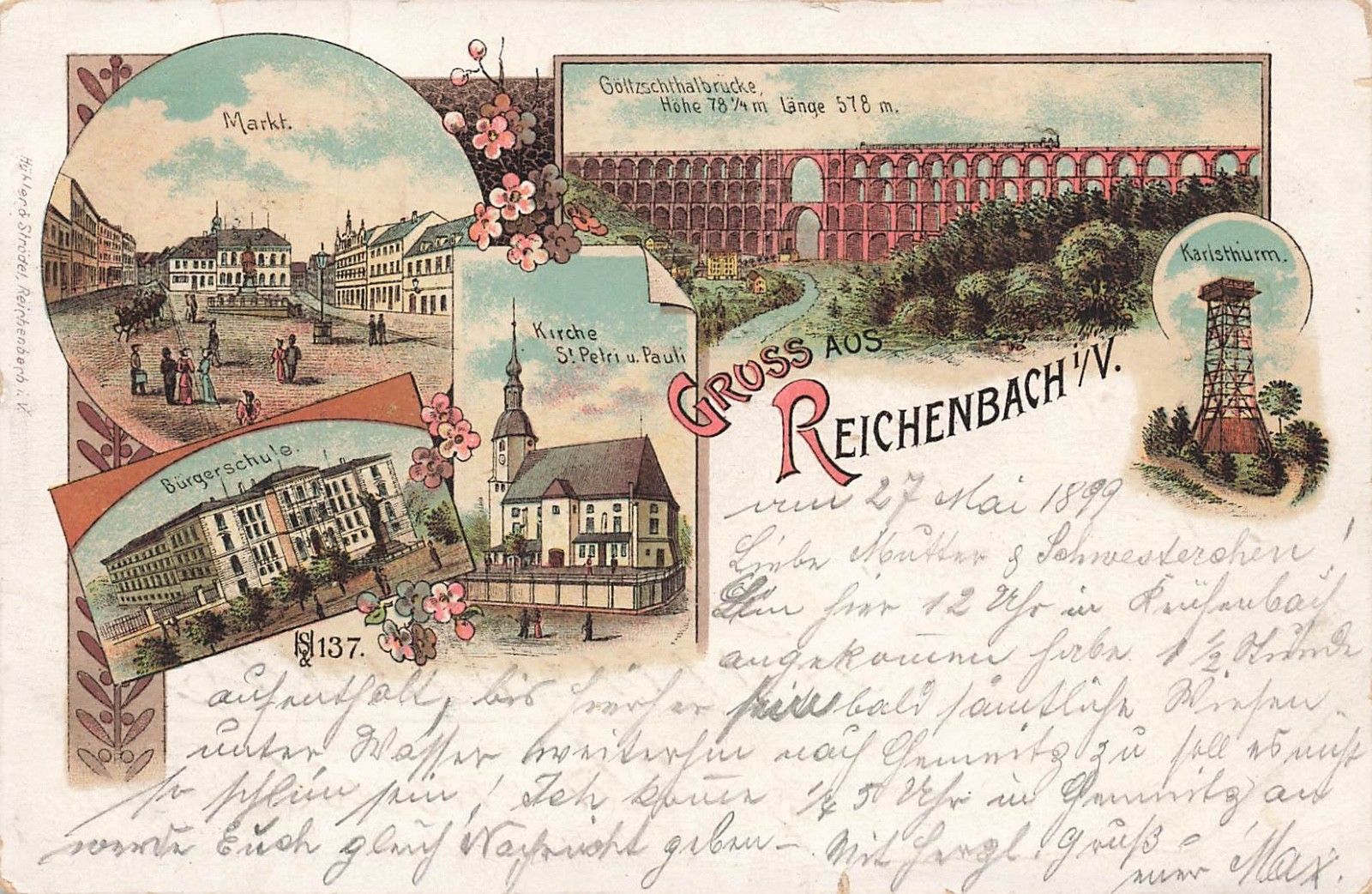 AK Reichenbach Göltzschthalbrücke Schule Sachsen Vogtland 1899 Postkarte Litho