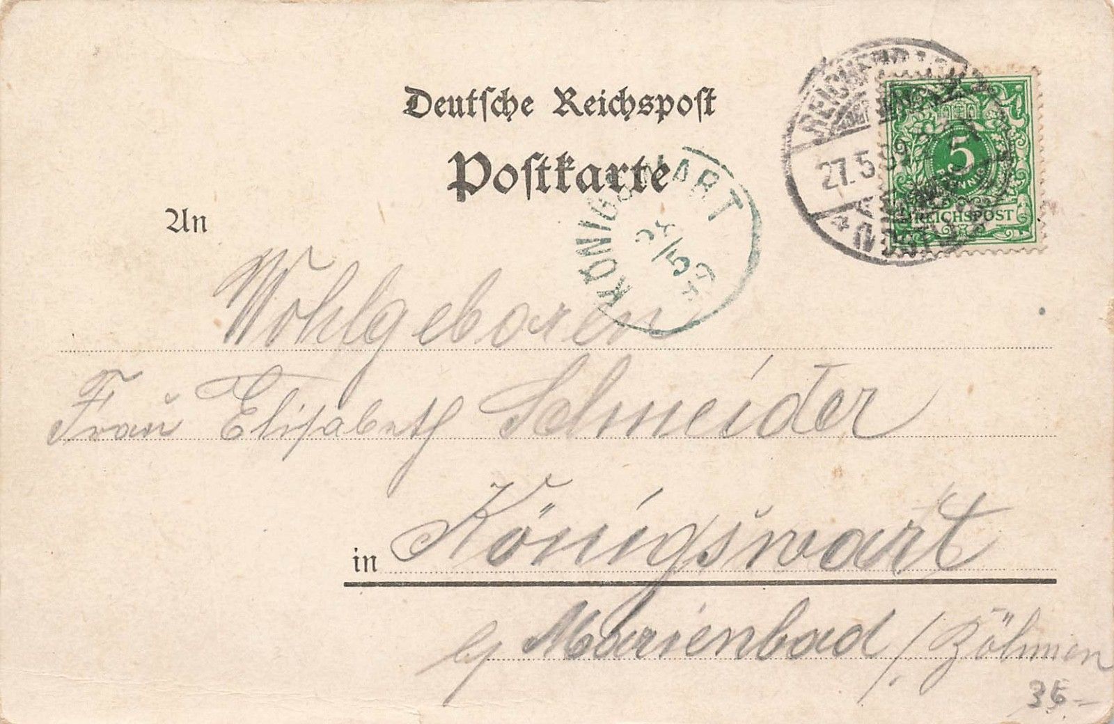 Rückseite: gelaufen 1899