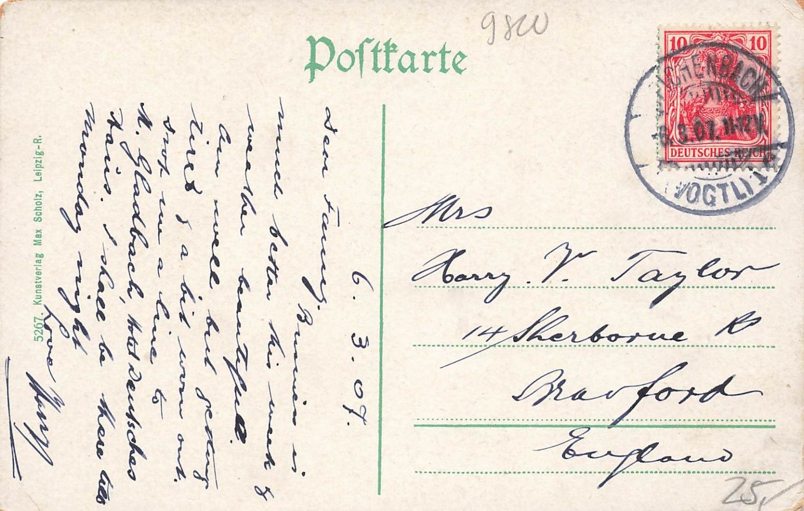 Rückseite: gelaufen 1907