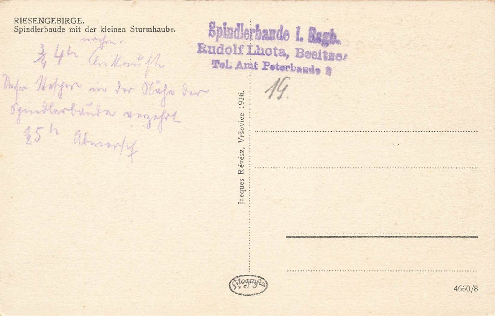 AK Riesengebirge Spindlerbaude kleinen Sturmhaube Schlesien ungelaufen Postkarte