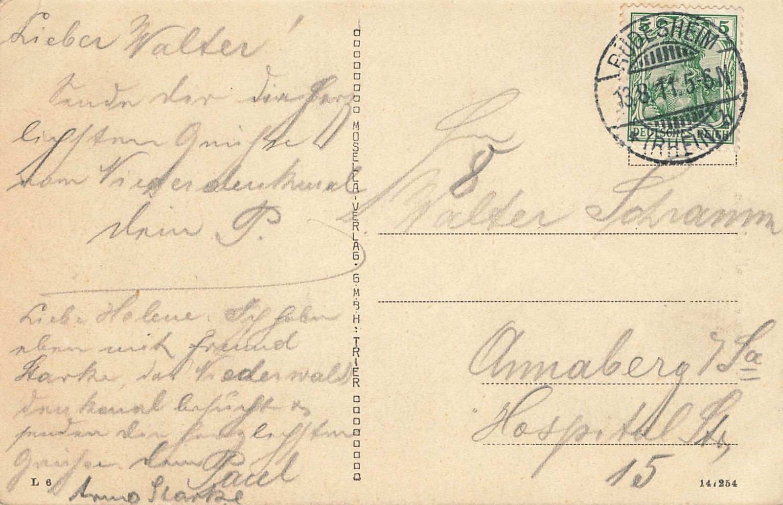 AK Rüdesheim am Rhein Nationaldenkmal Niederwald Hessen 1911 gelaufen Postkarte