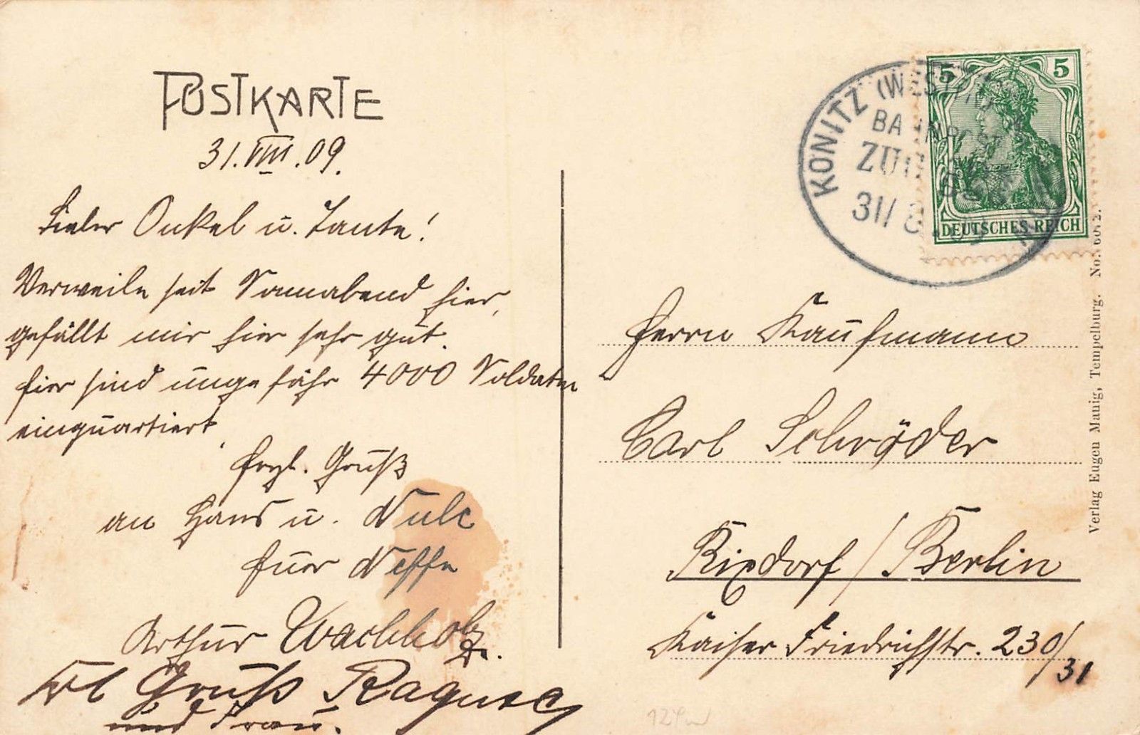 Rückseite: gelaufen 1909