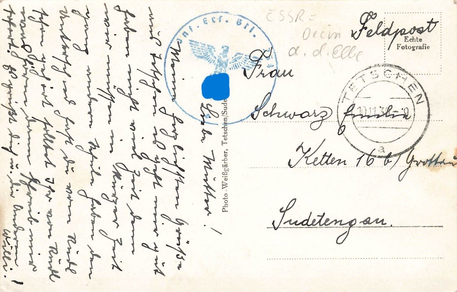 AK Tetschen-Bodenbach Brücke Schloss Brunnen Sudeten 1939 gelaufen Postkarte