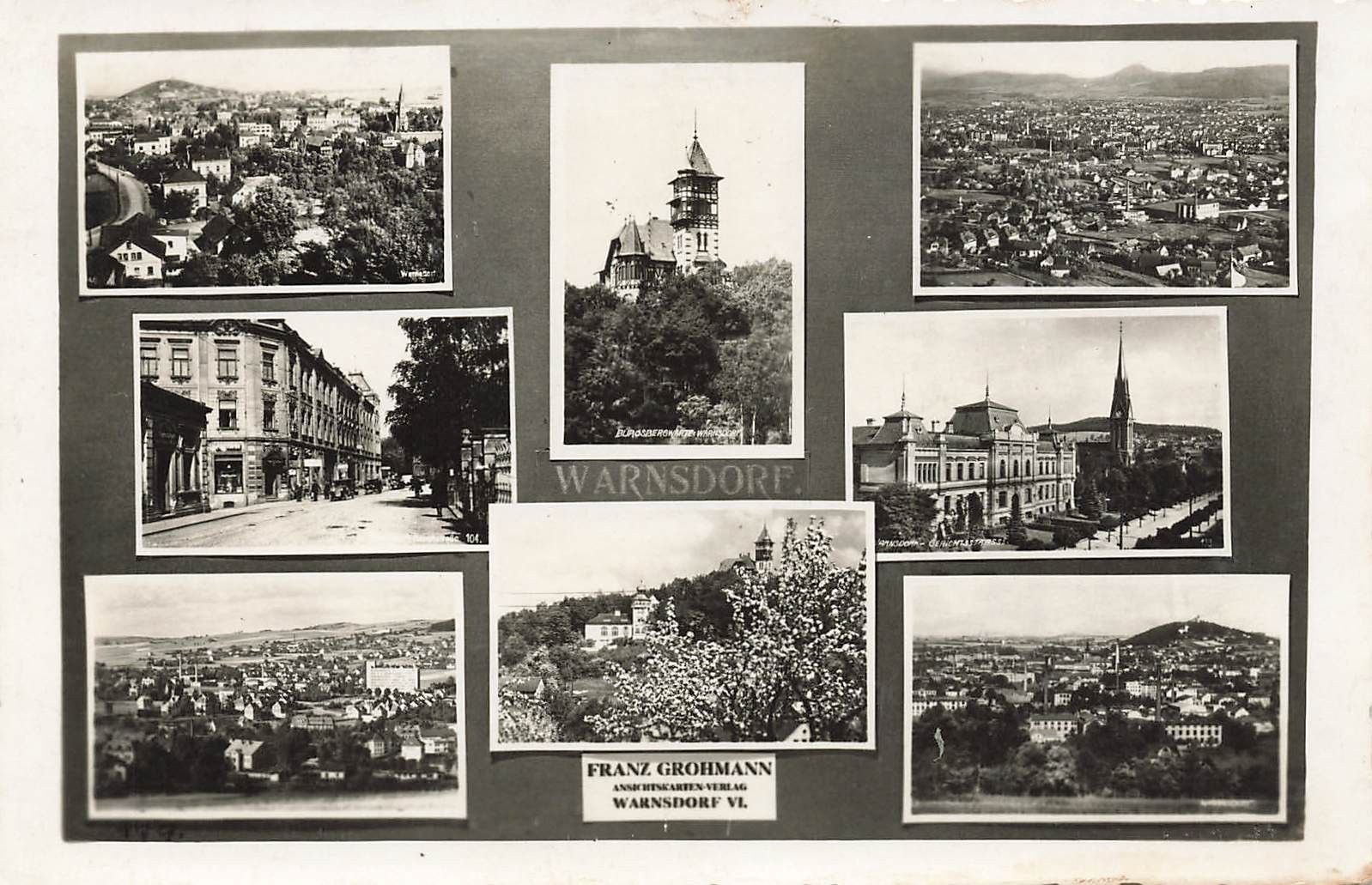 AK Warnsdorf Burgsbergwirte Gerichtsstraße Panorama Sudeten ungelaufen Postkarte