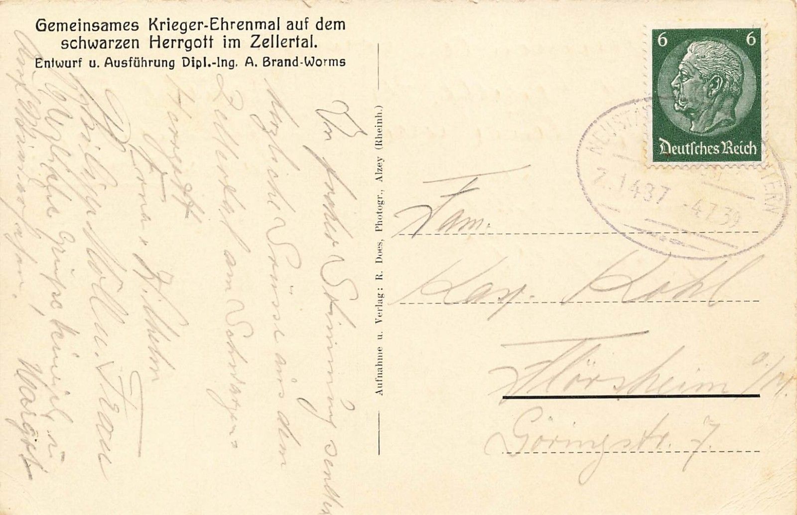 Rückseite: gelaufen 1939