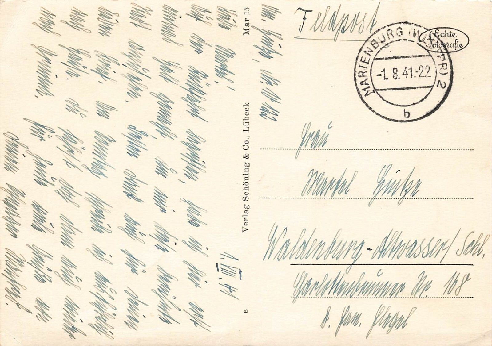 Original Postkarte Maße 9 x 14 cm, gezackter Rand Rückseite: gelaufen 1941 Zustand: gute Erhaltung