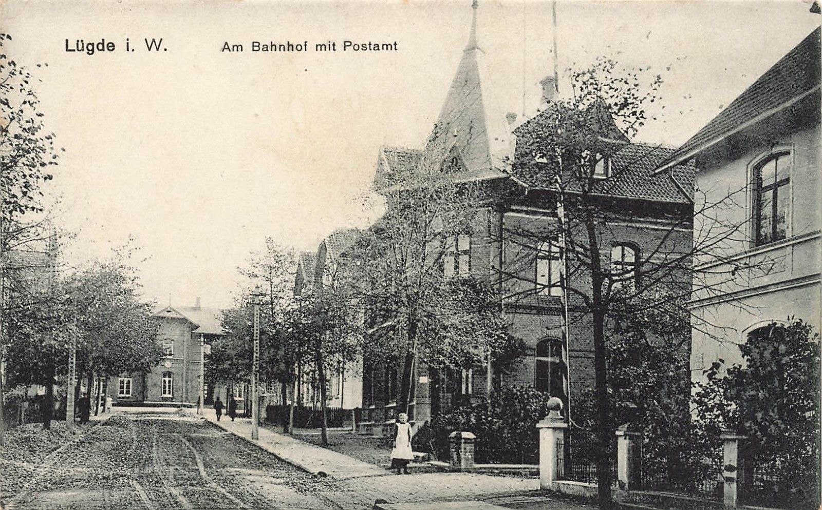 Am Bahnhof mit Postamt Lüdge Nordrhein-Westfalen Postkarte AK