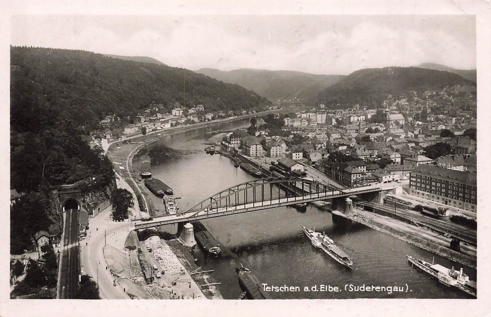 Ansicht Brücke in Tetschen an der Elbe Sudetengau Sudeten Postkarte AK 1941