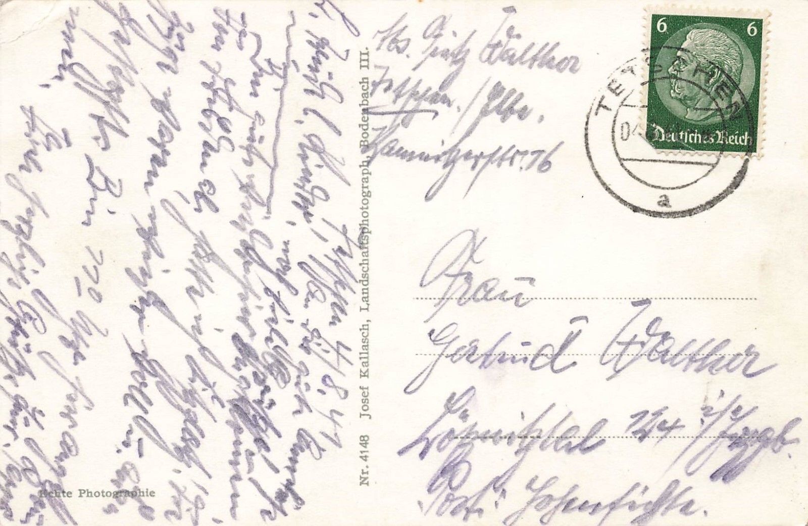 Rückseite: gelaufen 1941