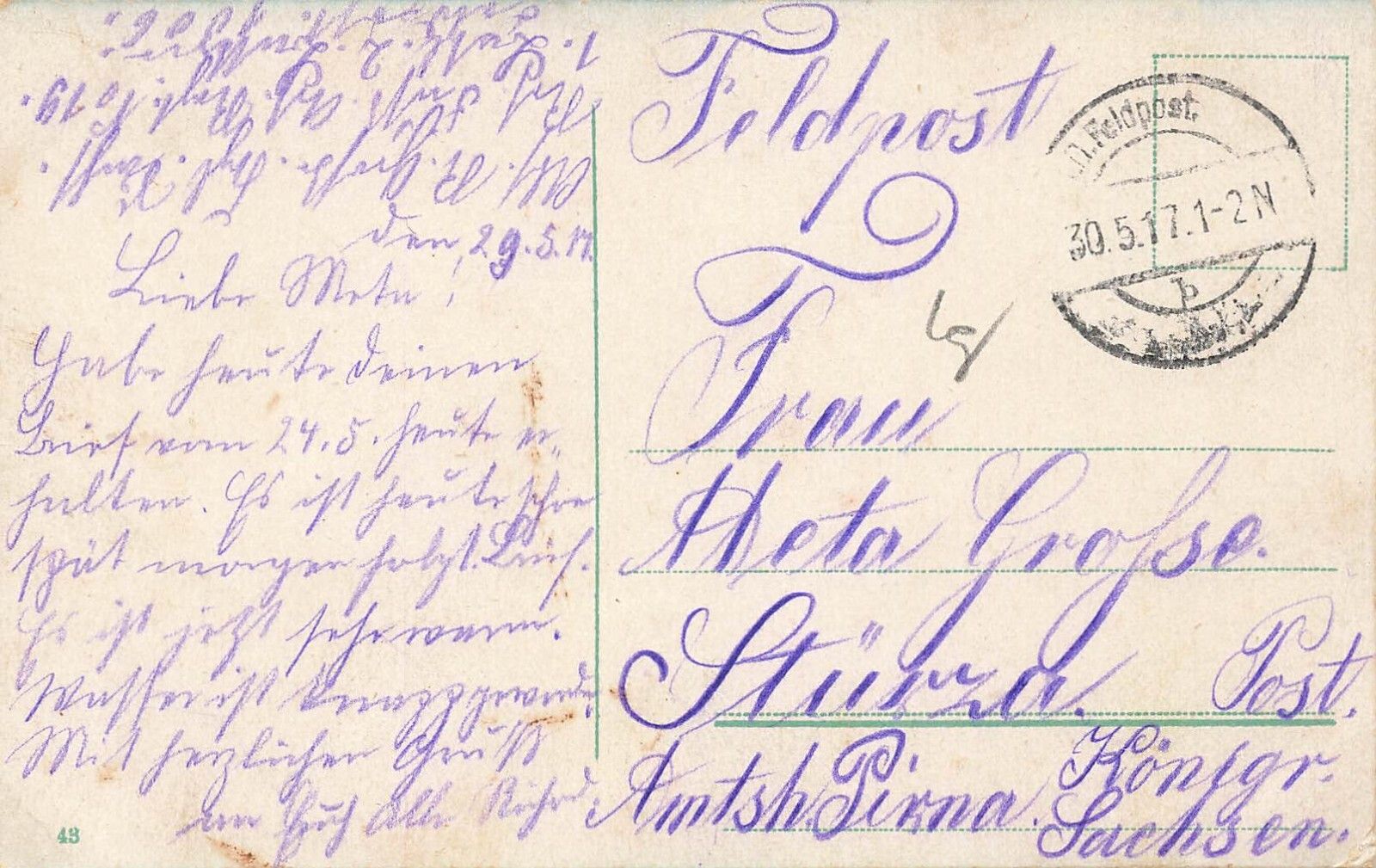 Original Postkarte Maße 9 x 14 cm Rückseite: gelaufen 1917 Zustand: leicht gebraucht