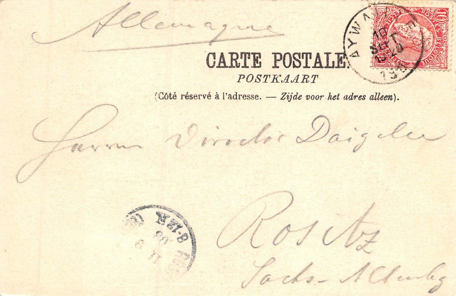 Original Postkarte Maße 9 x 14 cm Rückseite: gelaufen 1903 von Aywaille nach Rositz Zustand: gute Erhaltung