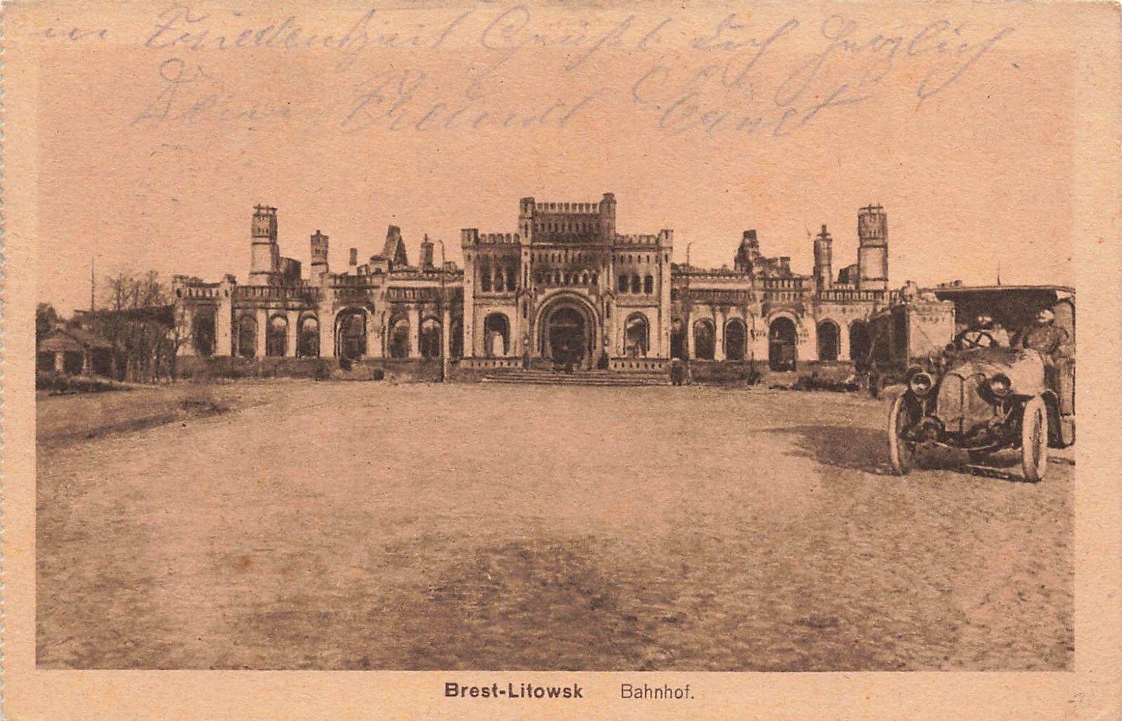Bahnhof in Brest-Litowsk Belarus Postkarte AK 1917