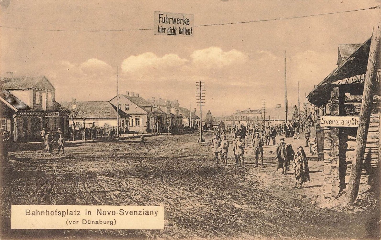 Bahnhofsplatz in Novo-Svenziany bei Dünaburg Lettland Postkarte AK