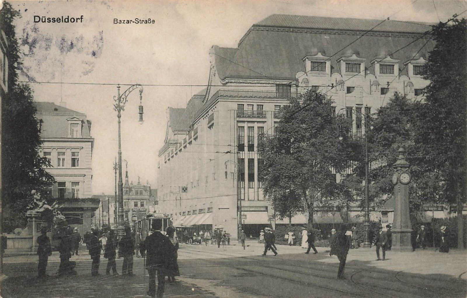 Bazar-Straße mit Straßenbahn in Düsseldorf Nordrhein-Westfalen Postkarte AK 1913
