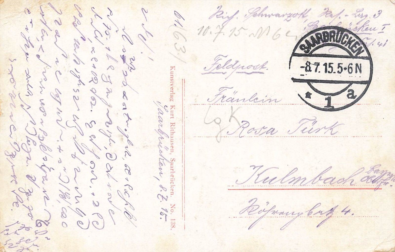Original Postkarte Maße 9 x 14 cm Rückseite: gelaufen 1915 Zustand: leicht gebraucht, Knick