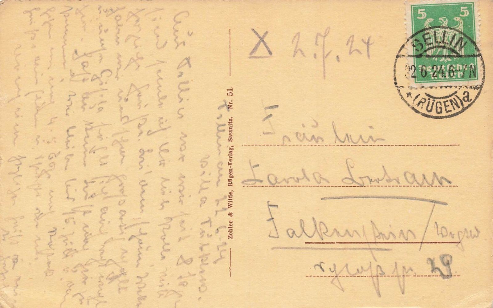 Rückseite: gelaufen 1924