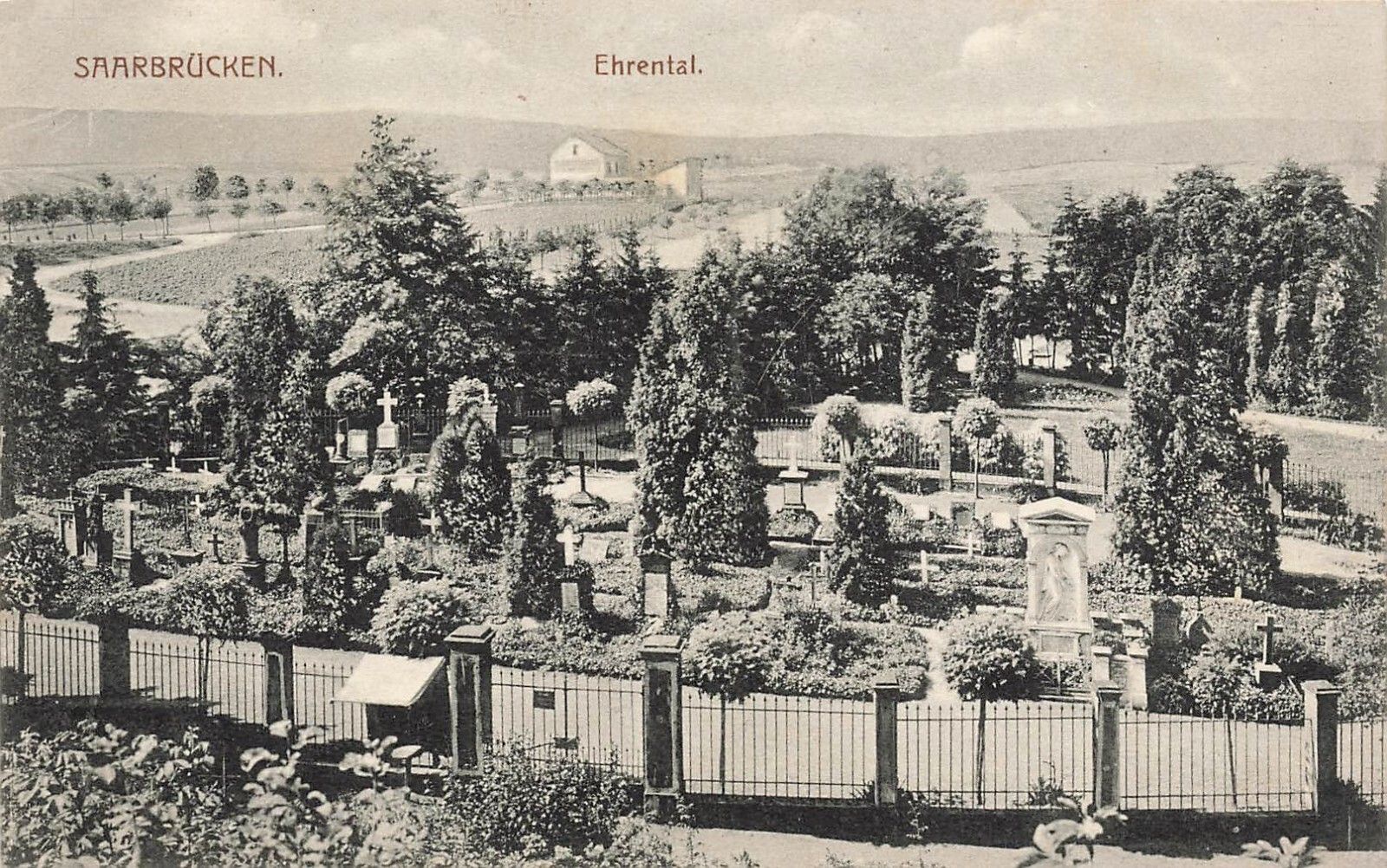 Blick auf Ehrental mit Friedhof in Saarbrücken Saarland Postkarte AK 1915