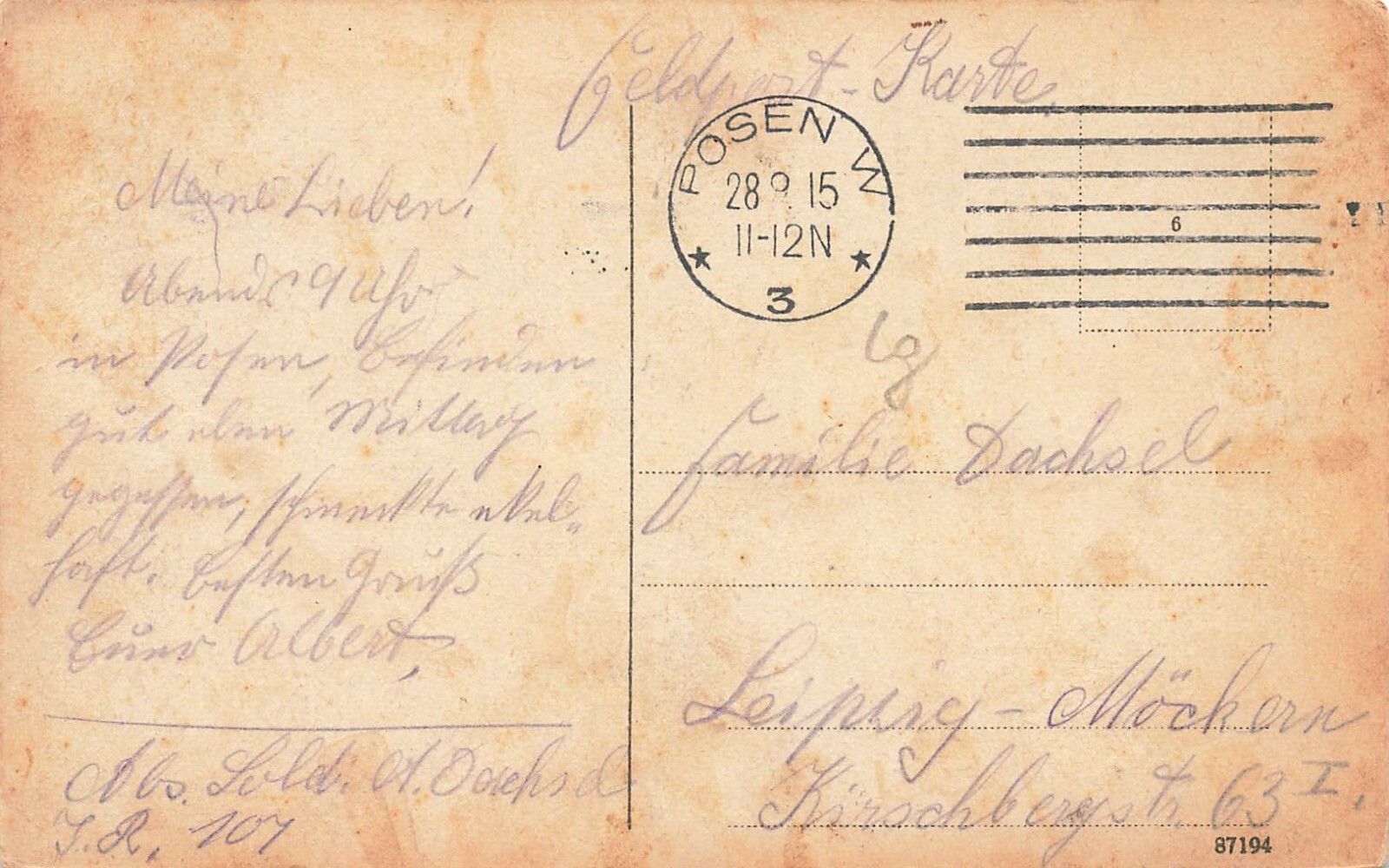 Rückseite: gelaufen 1915