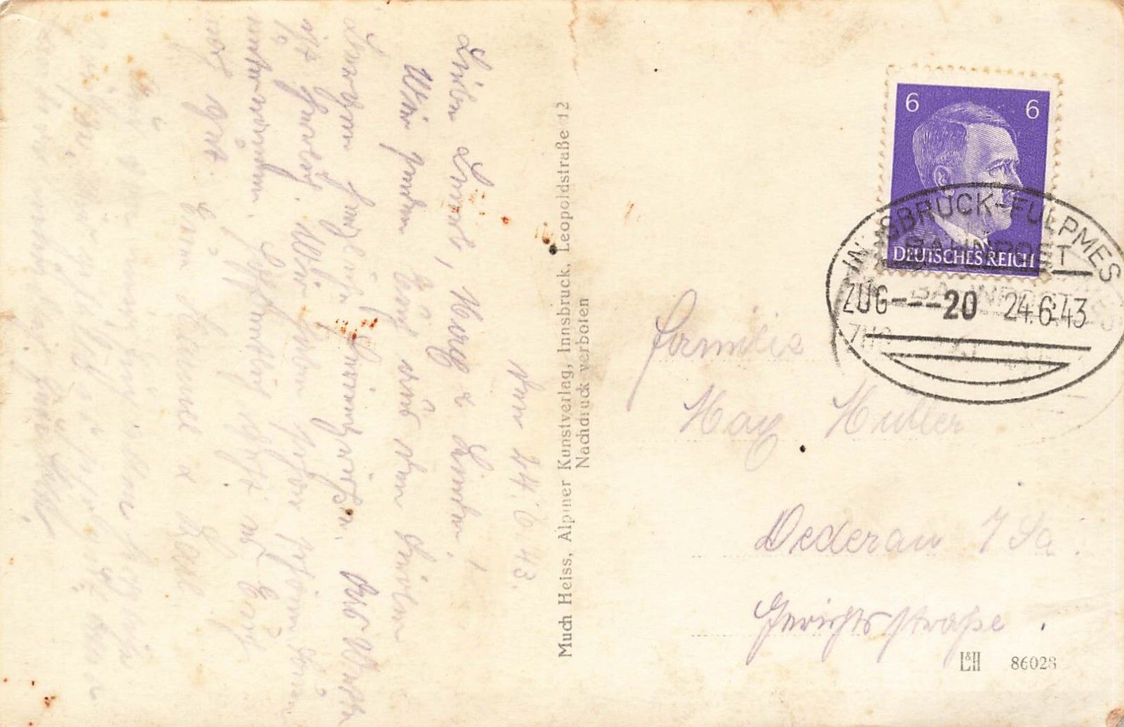 Original Postkarte Maße 9 x 14 cm Rückseite: gelaufen 1943 Zustand: gute Erhaltung
