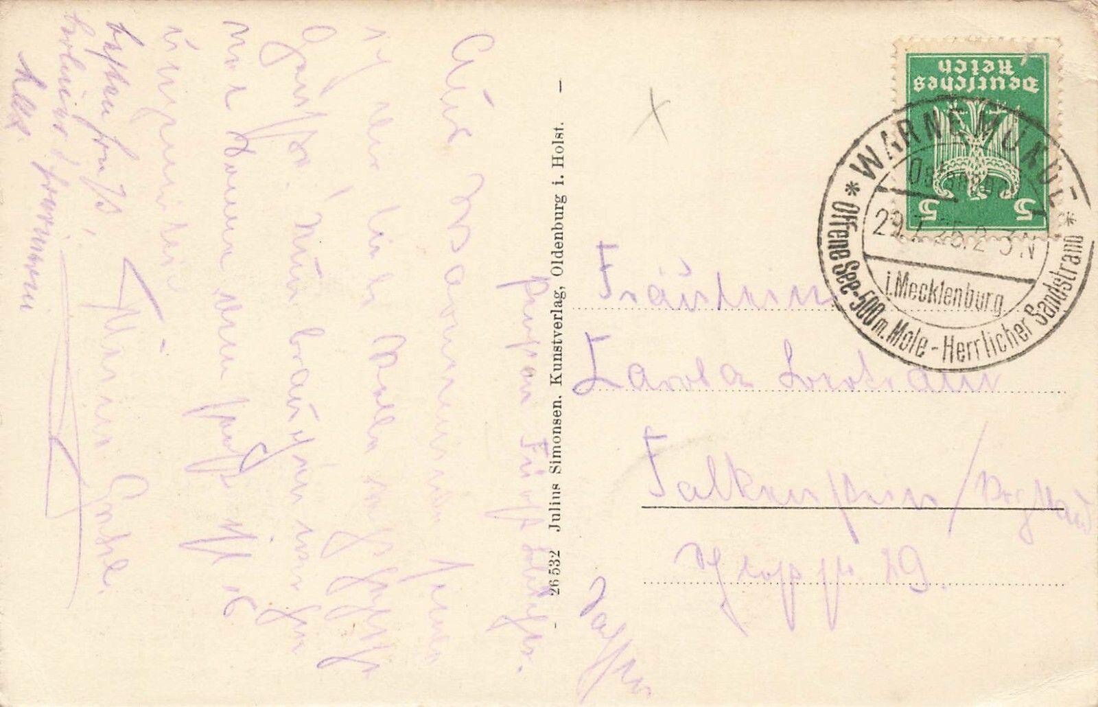 Rückseite: gelaufen 1925