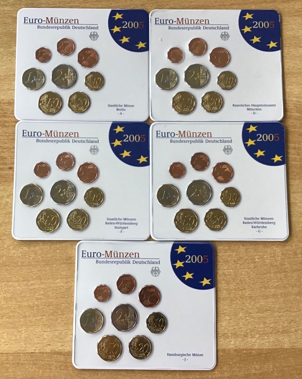 Euro KMS Kursmünzensatz Deutschland 2005 A D F G J Zustand siehe Originalbilder Echtheit wird garantiert.