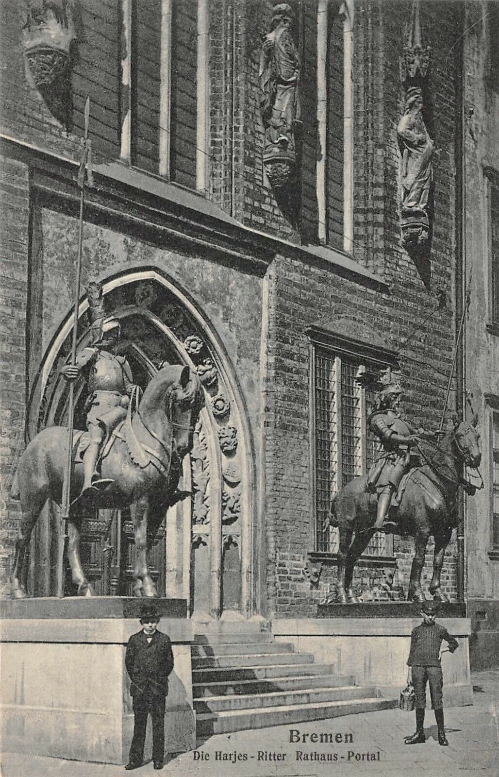 Bremen Die Harjes-Ritter Rathaus-Portal Postkarte AK