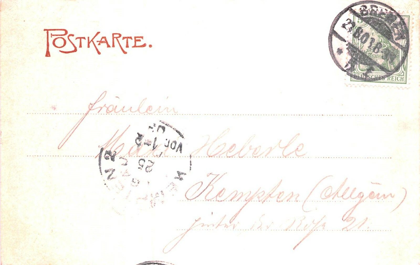 Rückseite: gelaufen 1903 von Bremen nach Kempten