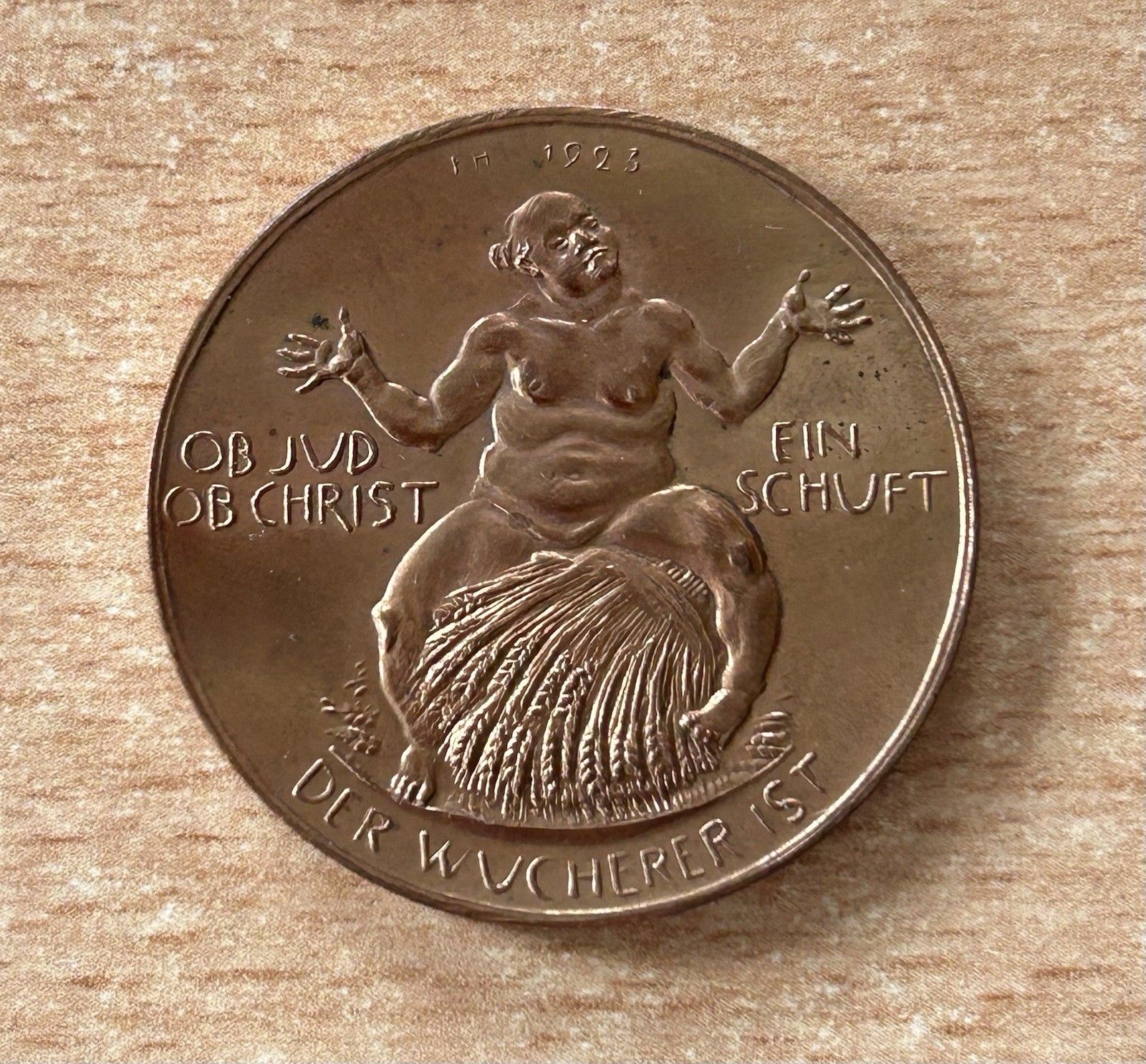 Deutsches Reich Medaille 1923 Not Inflation Wucherer Bronze Weimarer Republik Gewicht:22,3g Durchmesser: 33mm Zustand: siehe original Bilder