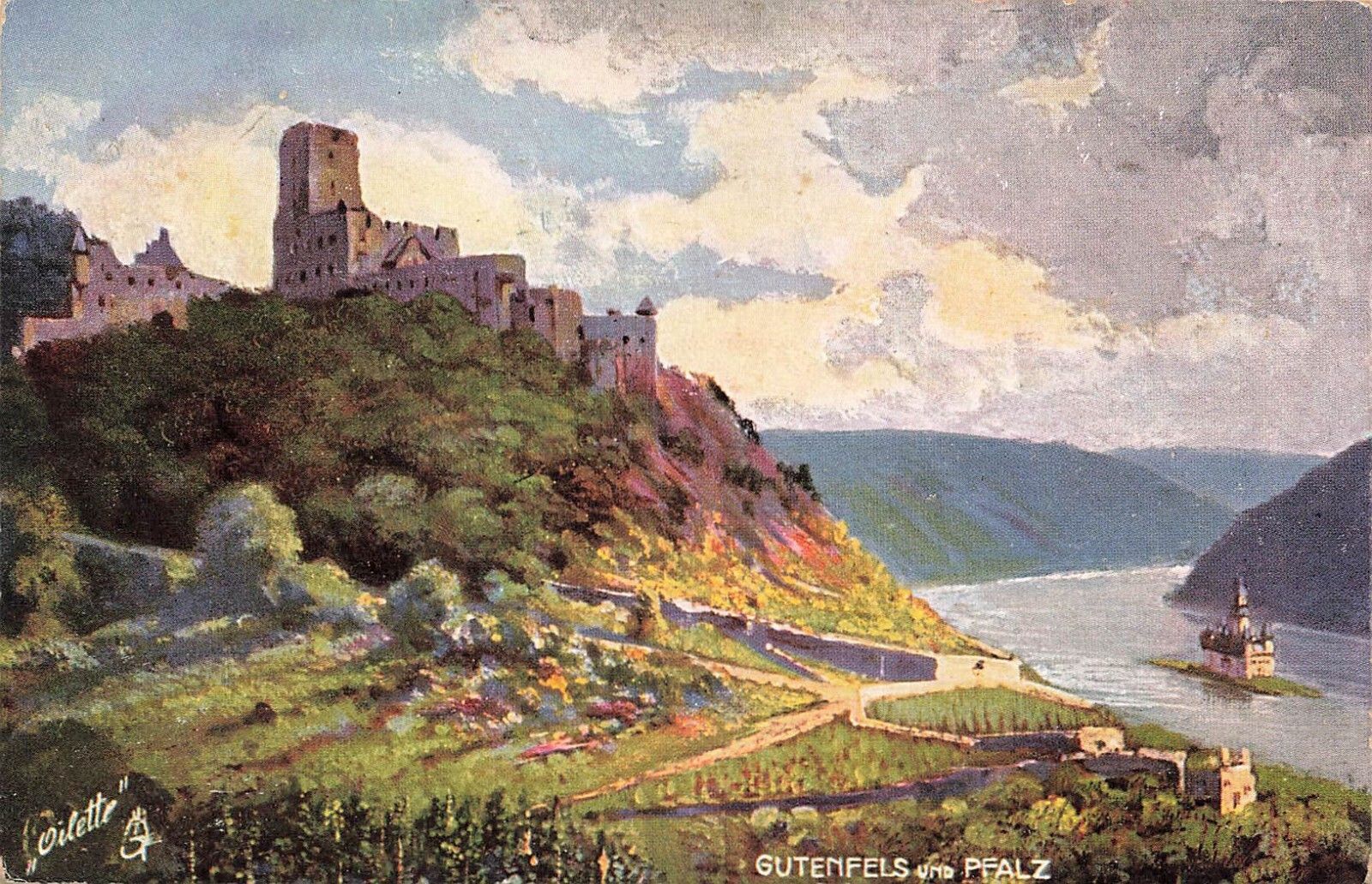 Burg Gutenfels und Pfalz Kaub Rheinland-Pfalz Postkarte Tuck Oilette AK