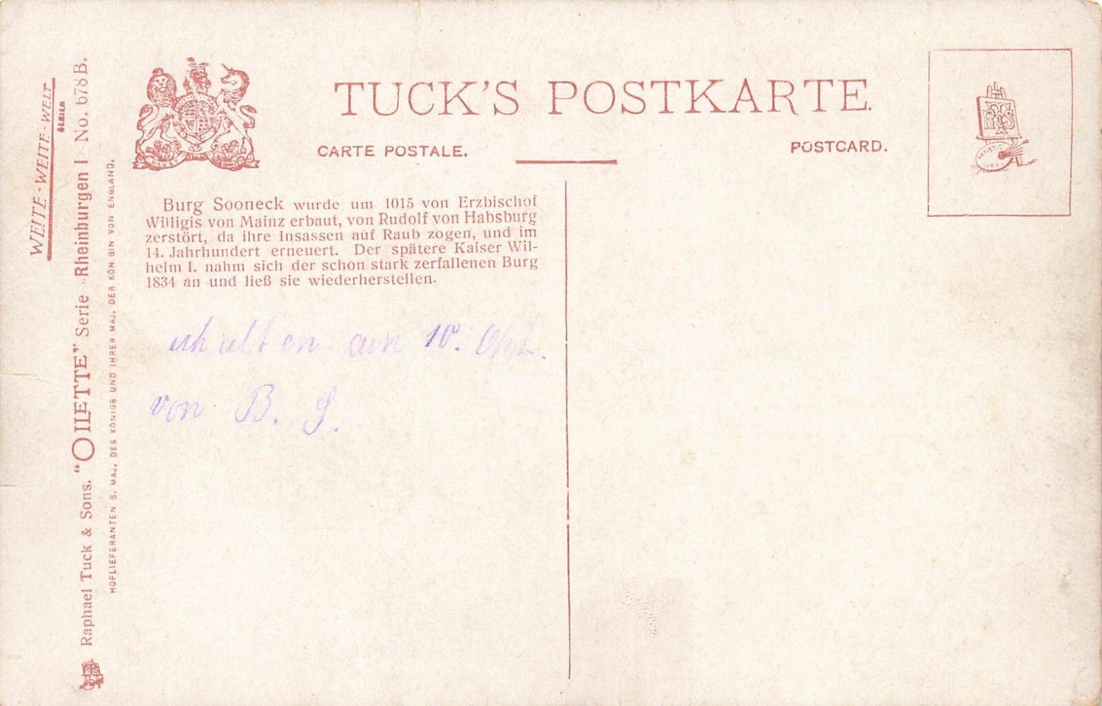 Burg Sooneck Niederheimbach Rheinland-Pfalz Tucks-Postkarte AK