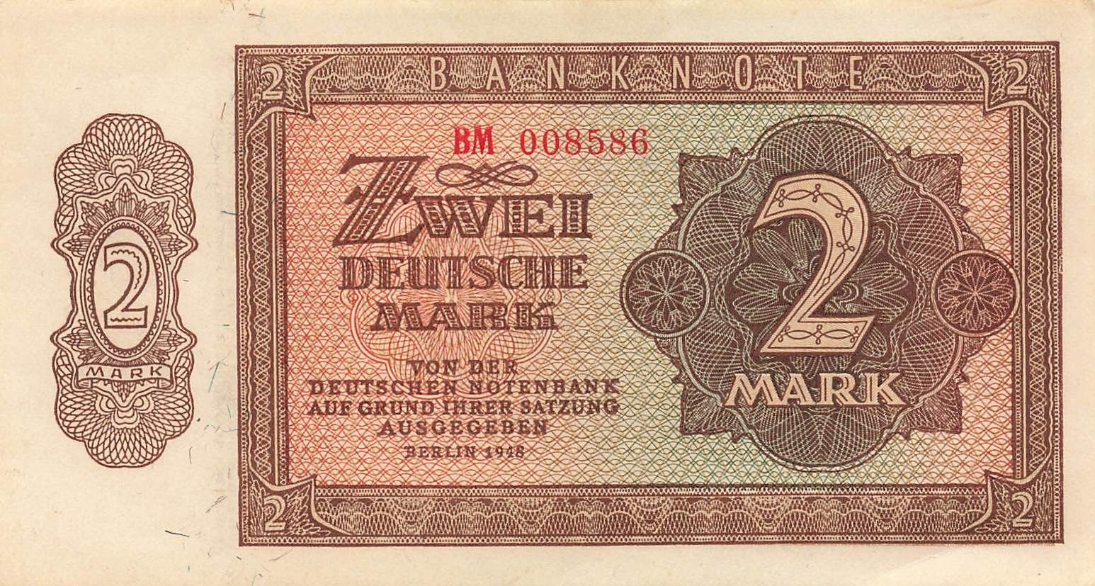 DDR DDR 2 Mark 1948 UdSSR-Druck Ro: 341b ( zwei Serienbuchstabe vor KN 6-stellig ) Zustand: fast Kassenfrisch/UNC Echtheit wird garantiert.