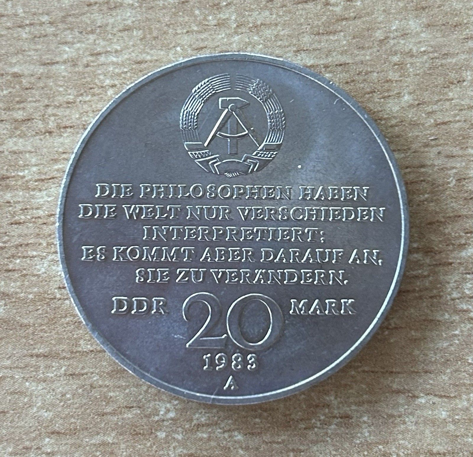 DDR 20 Mark Karl Marx 1983 Gedenkmünze Gewicht: 15 g Durchmesser: 33 mm Material: Kupfer / Nickel Zustand siehe Originalbilder Echtheit wird garantiert.