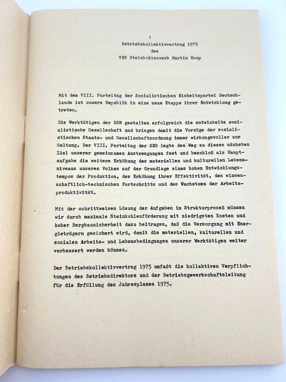 DDR Betriebs-Kollektivvertrag 1975 VEB Steinkohlenwerk Martin Hoop Zwickau