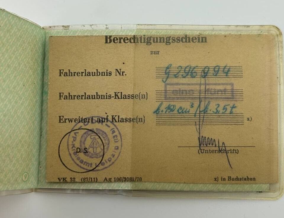 DDR Fahrerlaubnis Führerschein + Berechtigungsschein, Leipzig 1972 Original DDR Fahrererlaubnis Zustand: Alters-und Gebrauchsspuren