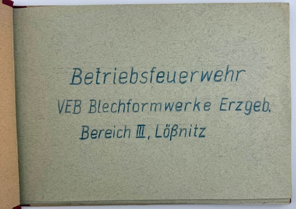 Originales DDR-Fotoalbum der Betriebsfeuerwehr vom VEB Blechformwerke Erzgebirge – Bereich III Lößnitz.