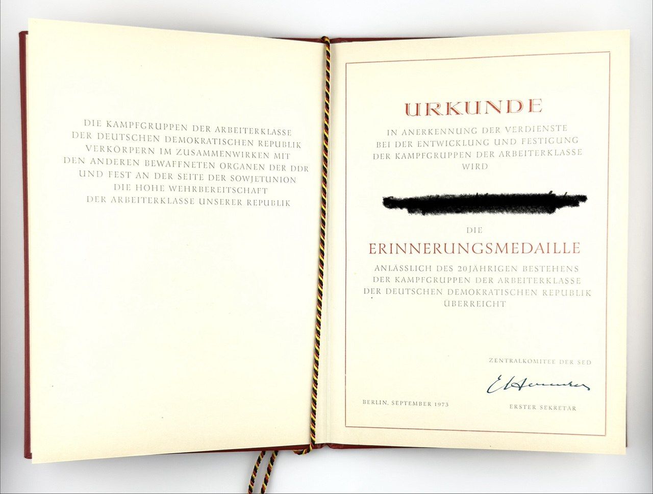 Original DDR Urkunde Zustand: gute Erhaltung