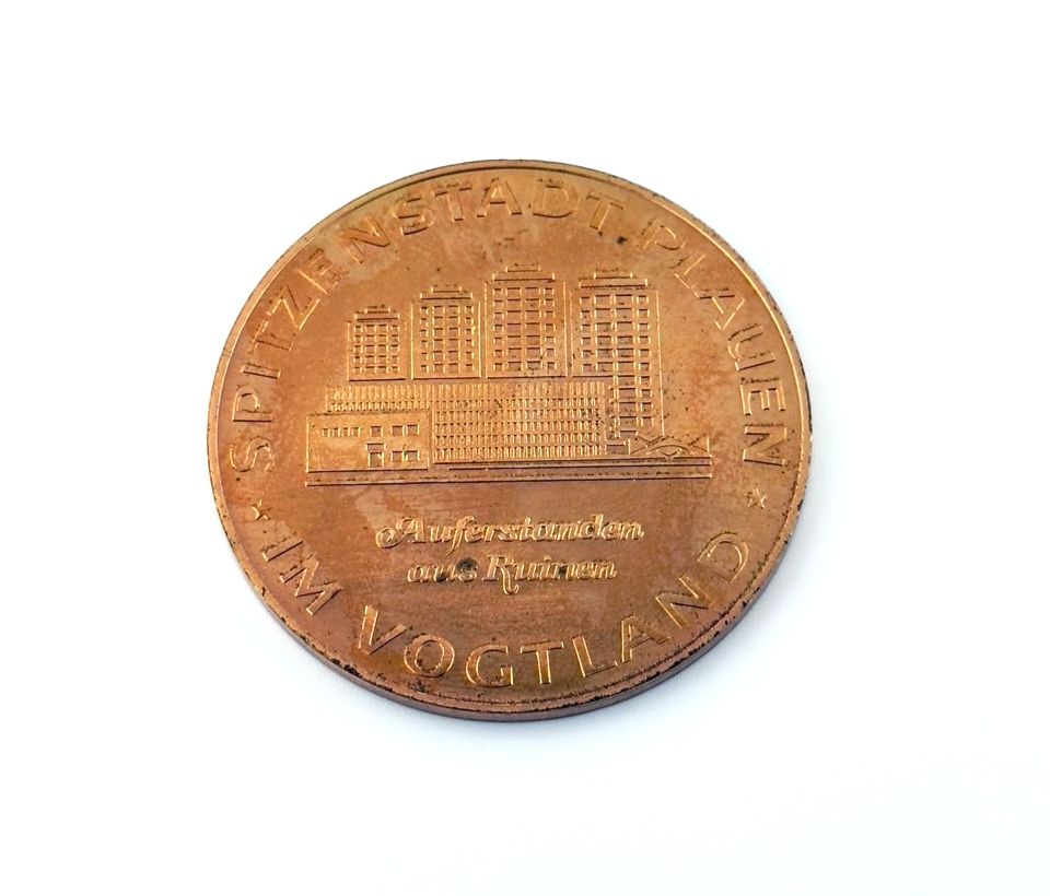 DDR Medaille Auferstanden aus Ruinen Spitzenstadt Plauen im Vogtland