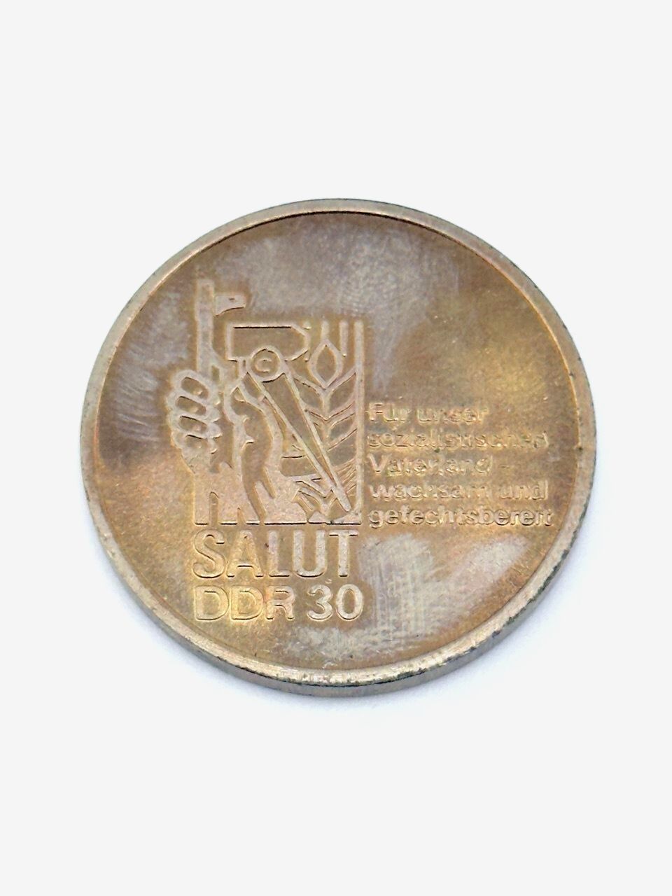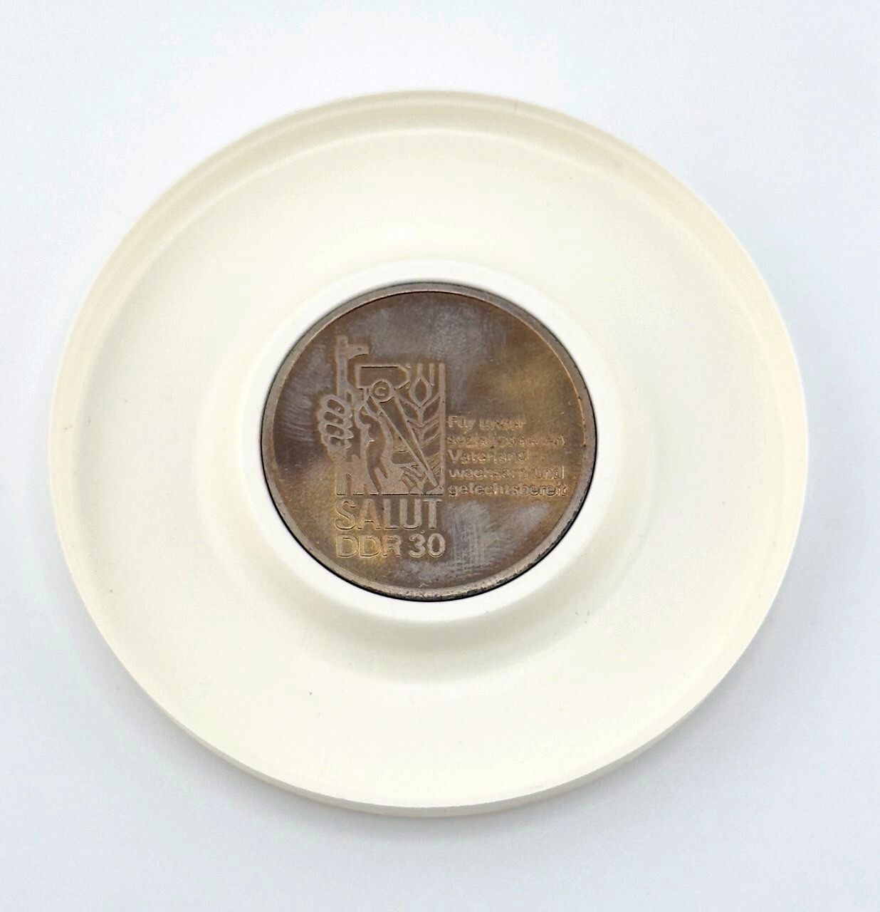 DDR Medaille Salut 30 Für unser sozialistisches Vaterland Original DDR Medaille Maße: Durchmesser 35 mm Zustand: altersgemäße Gebrauchsspuren (siehe Bilder) ✅ Viele weitere seltene DDR-Orden & Abzeichen, Medaillen in unserem Shop!