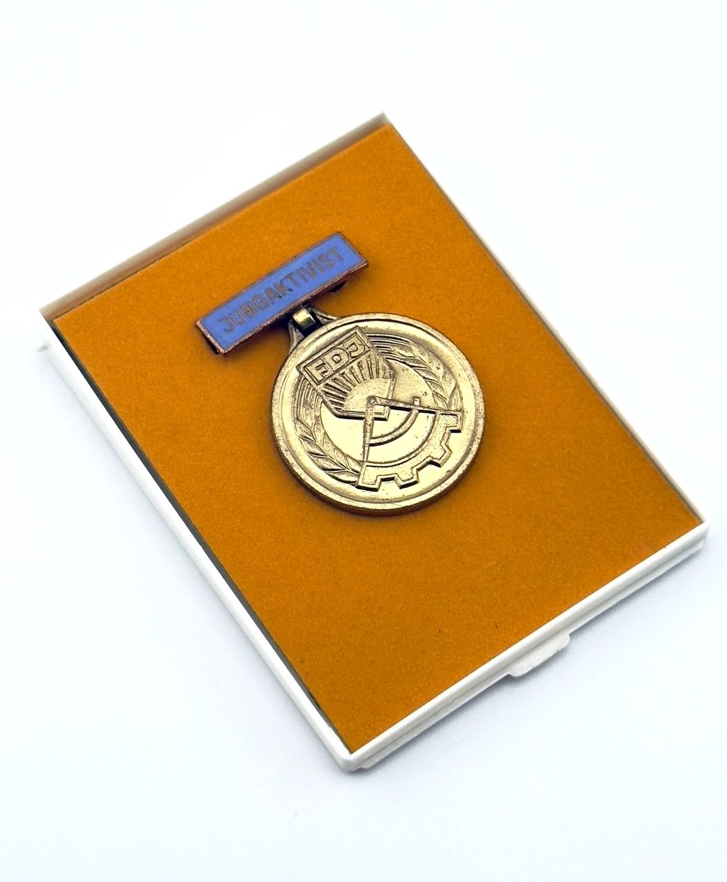 DDR Medaille Verbandsauszeichnung Jungaktivist Hellblau emailliert mit Etui