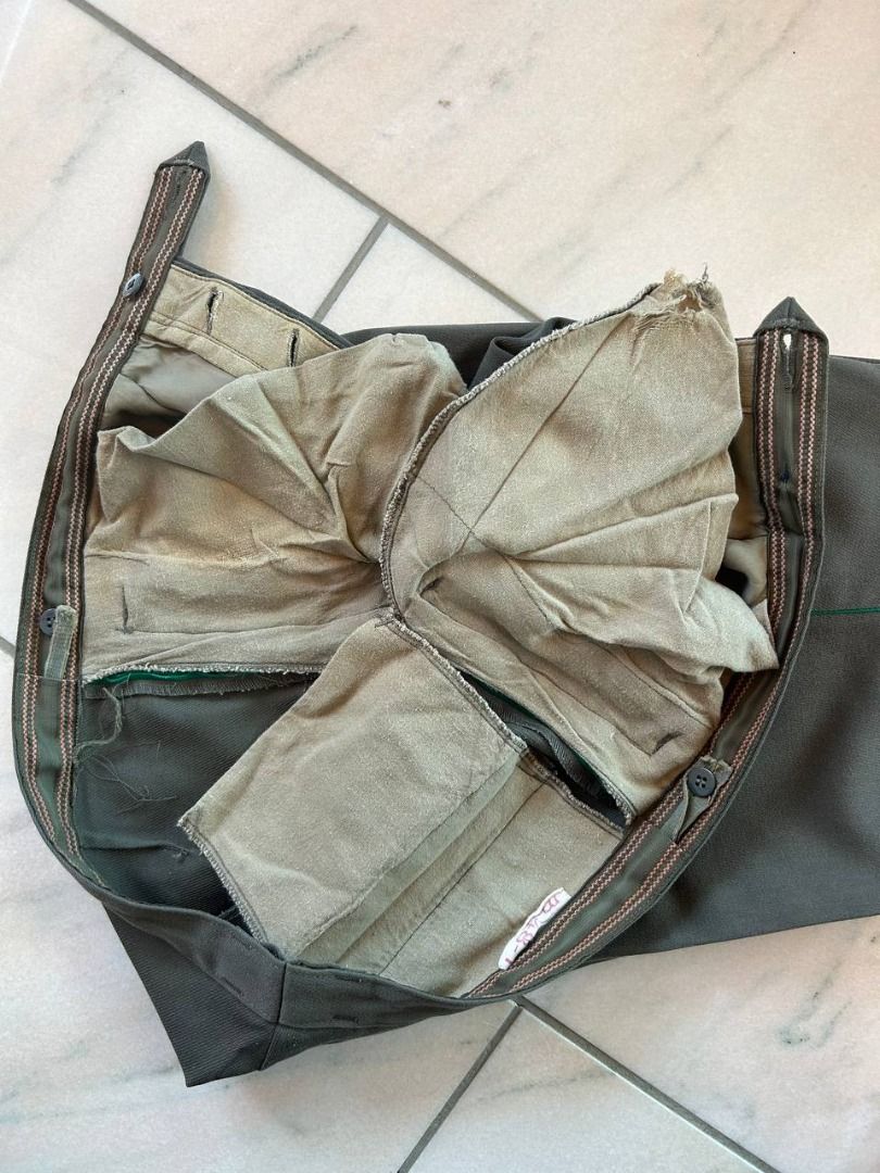 Zustand: Leicht gebraucht, Rechte Hosentasche hat ein Loch (Bild 6), Linienstempel verwaschen