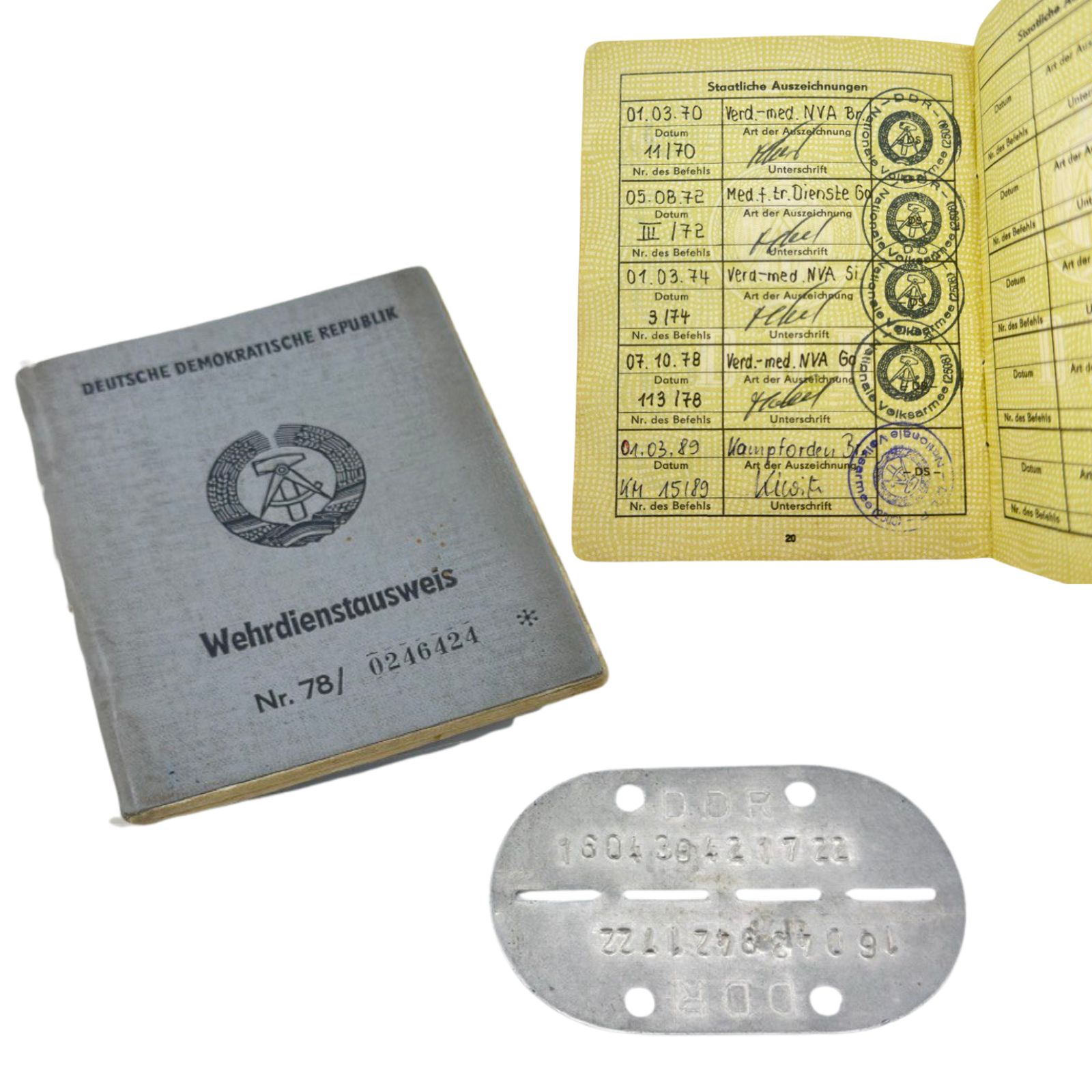 Wehrdienstausweis mit original eingelegter Erkennungsmarke und vollständigen Eintragungen