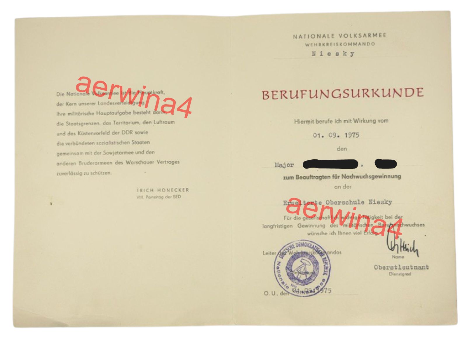Berufungsurkunde zur Nachwuchsgewinnung an der Oberschule Niesky