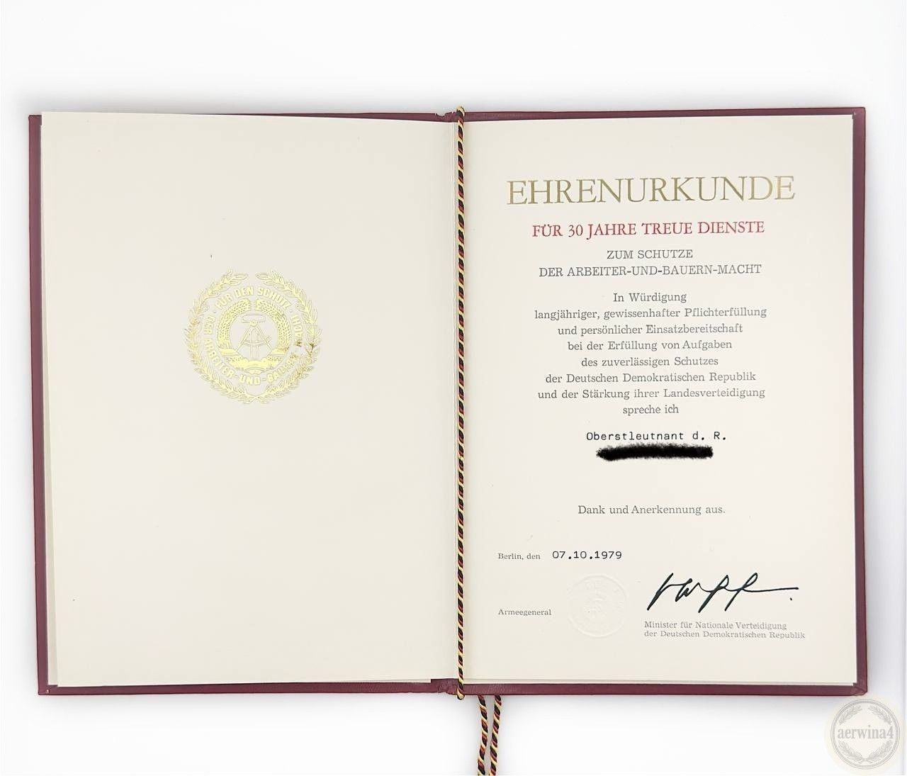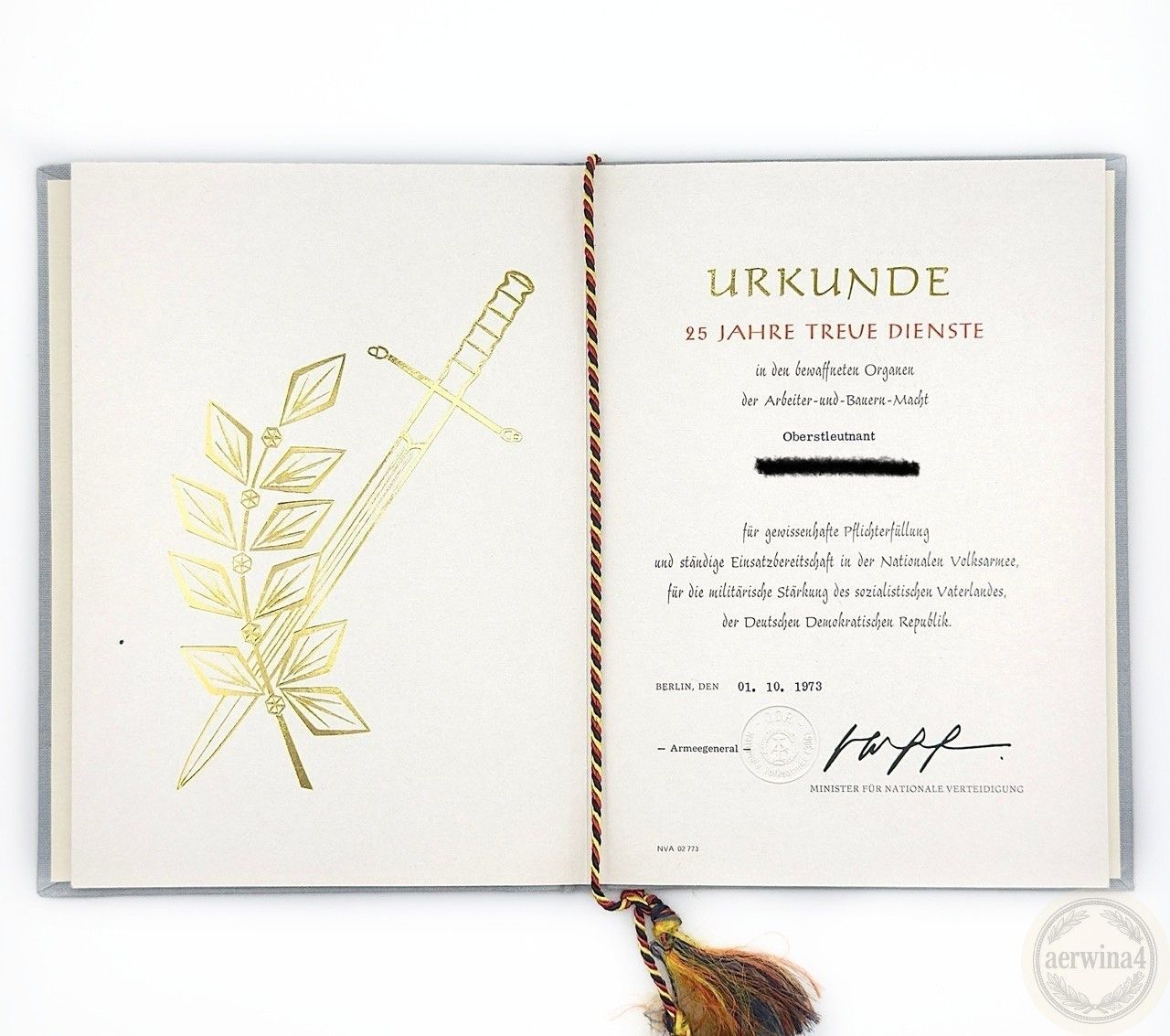 Treue Dienste NVA 25 Jahre Ehrengeschenk und UrkundeTreue Dienste NVA 30 Jahre Urkunde