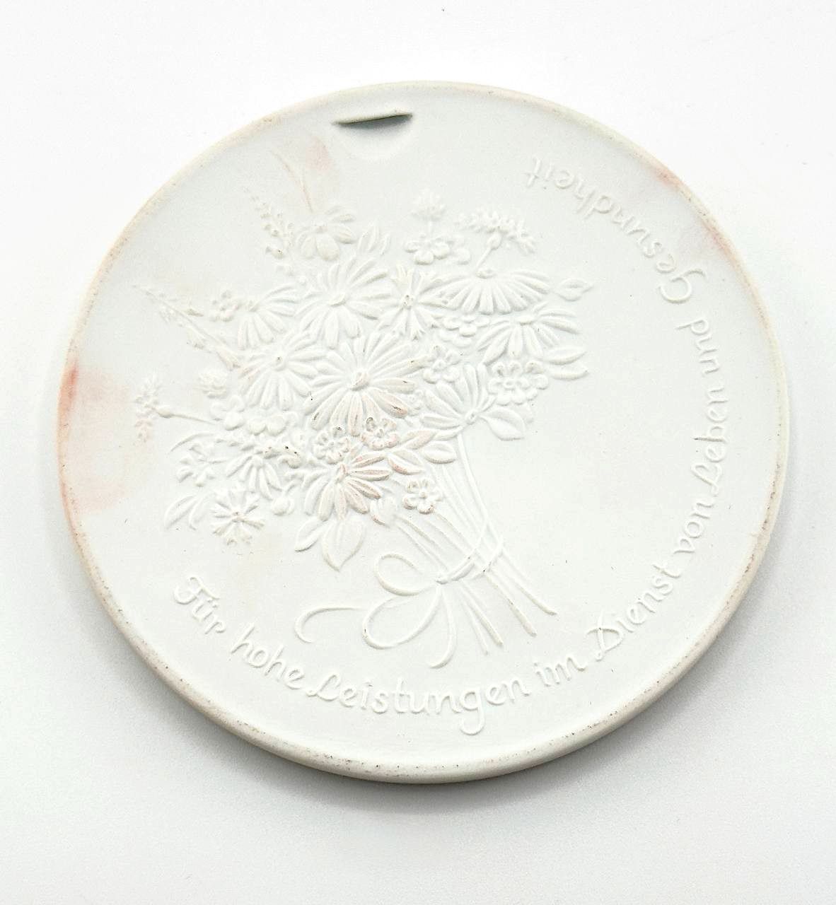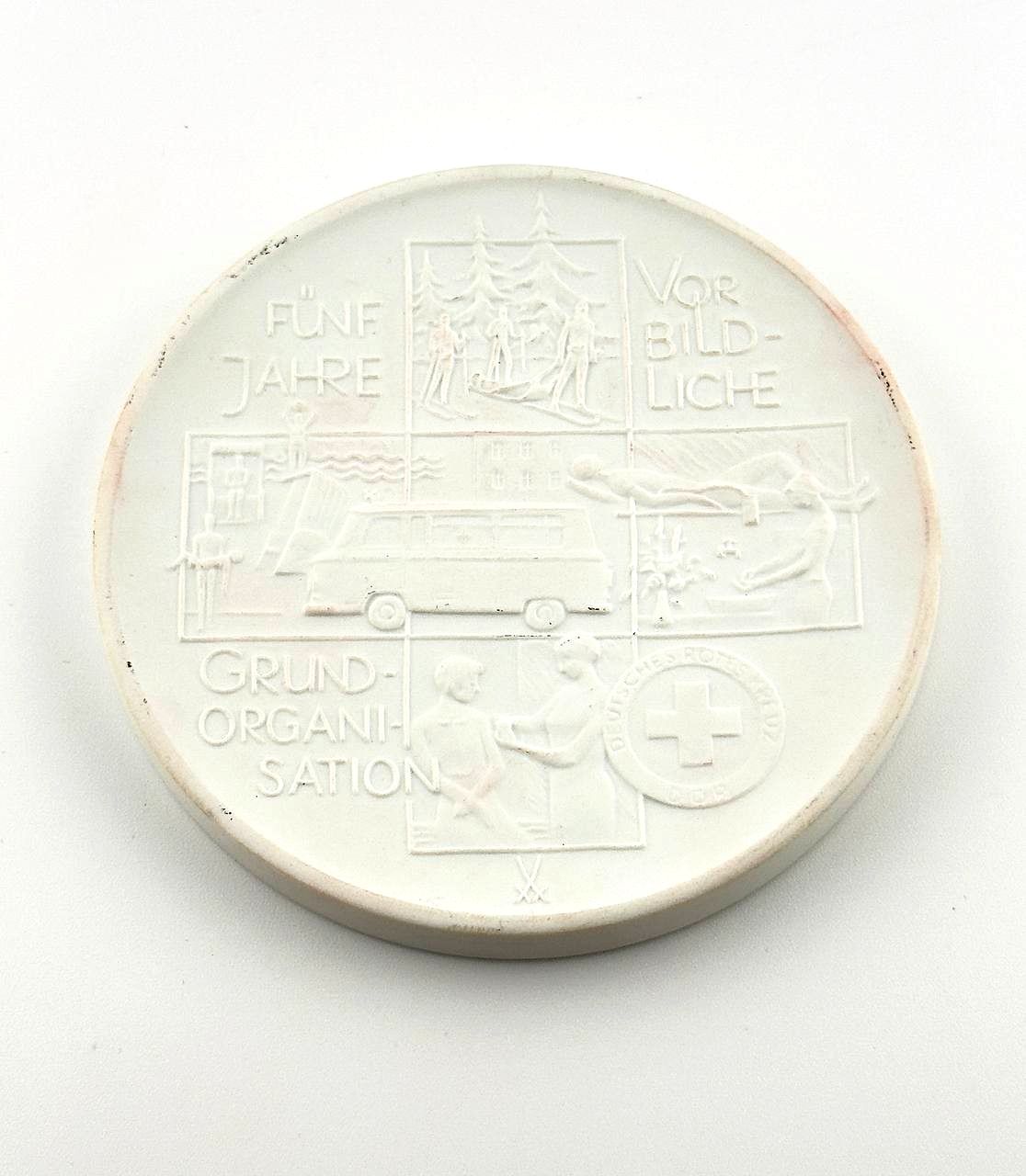 DDR Porzellan Medaille DRK Rotes Kreuz 5 Jahre vorbildliche Grundorganisation