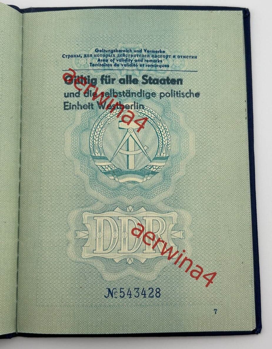 Zum Verkauf steht ein DDR-Reisepass, der 1969 ausgestellt wurde und bis 1979 gültig war.