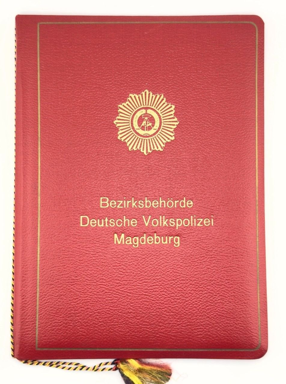 DDR Urkundenmappe leer Bezirksbehörde Deutsche Volkspolizei Magdeburg Original DDR Urkundenmappe Zustand: gute Erhaltung ✅ Viele weitere seltene DDR-Orden & Abzeichen, Medaillen in unserem Shop!