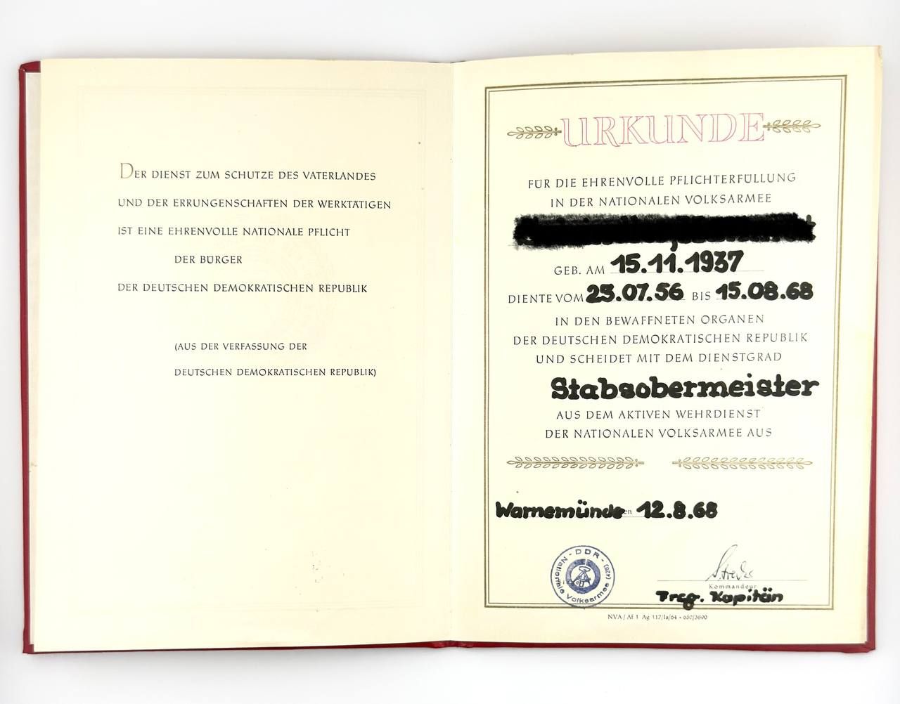 Original DDR Urkunde Zustand: gute Erhaltung